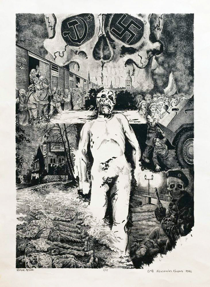 In a real sense Aleksandrs used art as a weapon in Latvia to fight Soviet occupation to defend his country. He considered that the main obstacle in the life and development of democratic societies is fascism: “Brown or red – they will not escape my images with their crimes against humanity.” He created a visual record so history could accuse the perpetrators of genocide and never forget the truth.